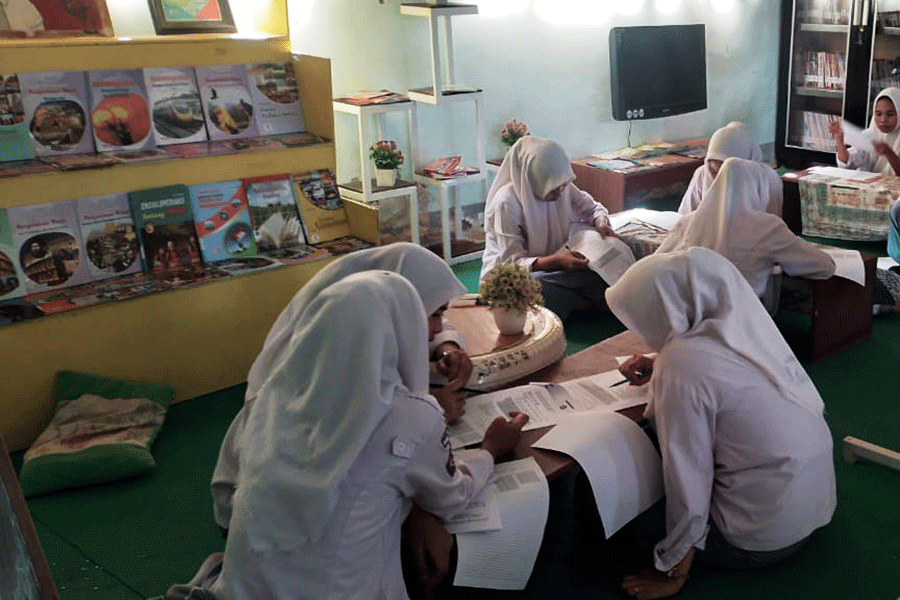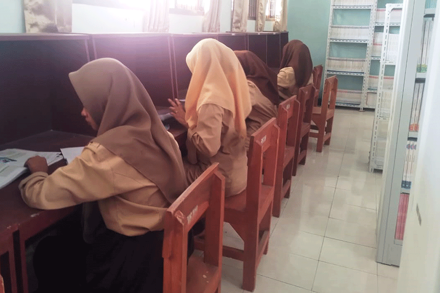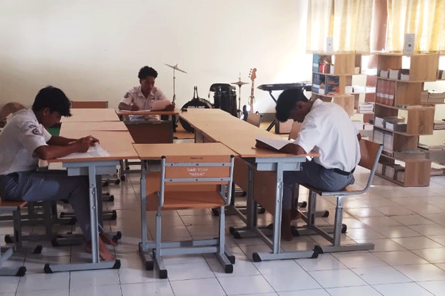 Beberapa siswa mengunakan waktu luang untuk membaca beberapa koleksi Buku yang terdapat pada Perpustakaan