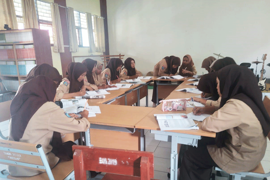 Beberapa siswa Belajar dan diskusi kelompok yang ditugaskan oleh guru mata pelajaran.